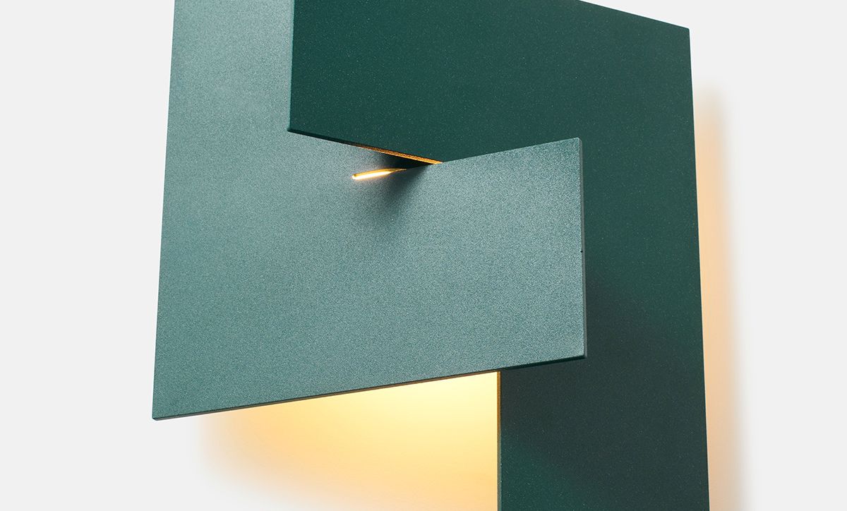 Our newest sconce embraces the gestural simplicity of glyphs—symbols that compact meaning into a minimal graphic form. The collaborative design comprises two vertical panels joined at 90 degrees that form two halves of a whole—an intersection of contrasting colors and textures, as well as distinct shadows that complement a soft diffusion of light.